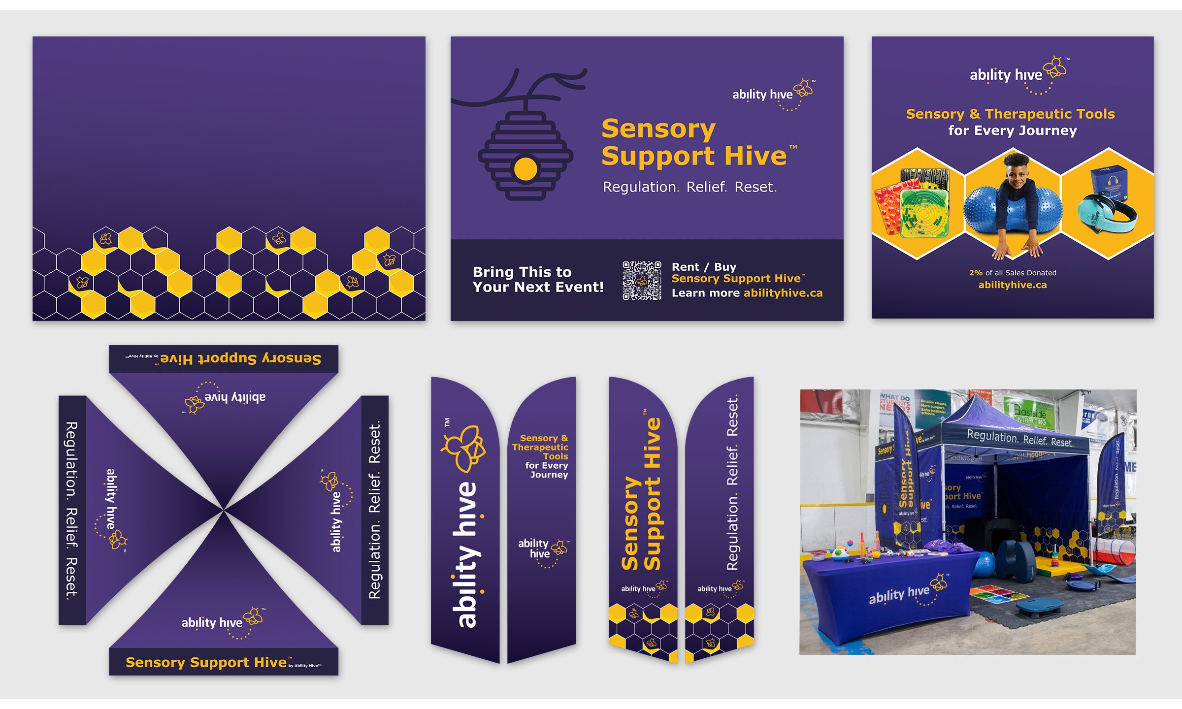 Ability Hive provides curated sensory and therapeutic tools for educators, therapists, families, and individuals. This company required branding, apparel, packaging, and trade show banners/displays.