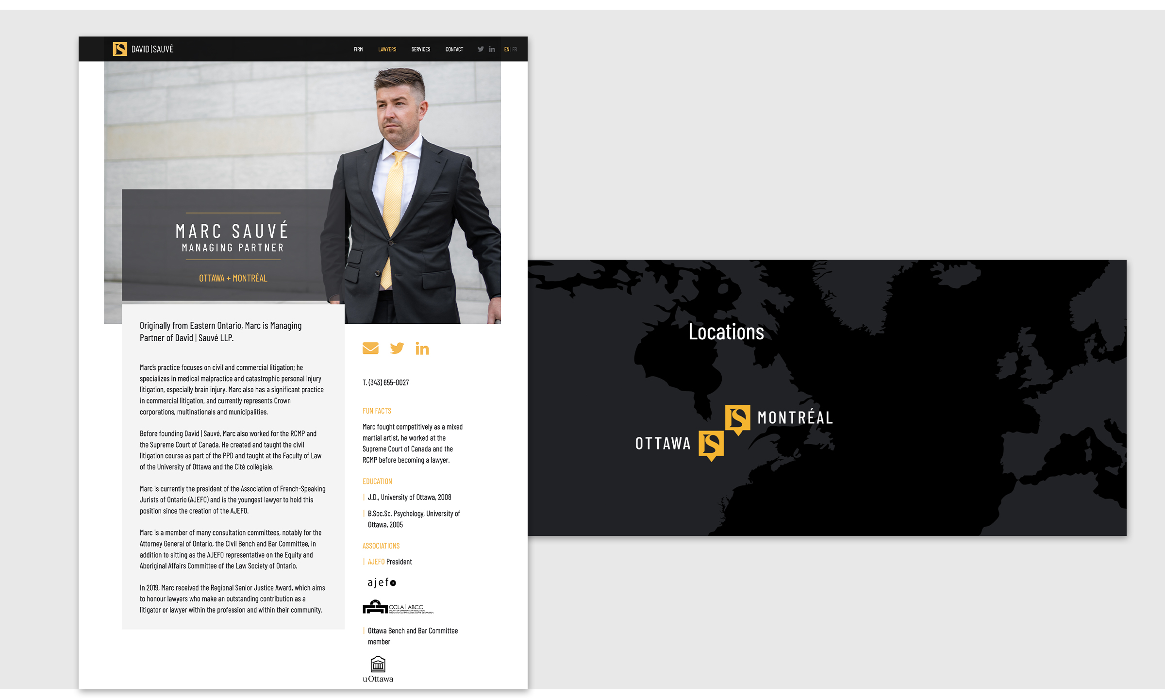 DAVID | SAUVÉ required a website to showcase their lawyers and various services. Web development by Selectrum Communications