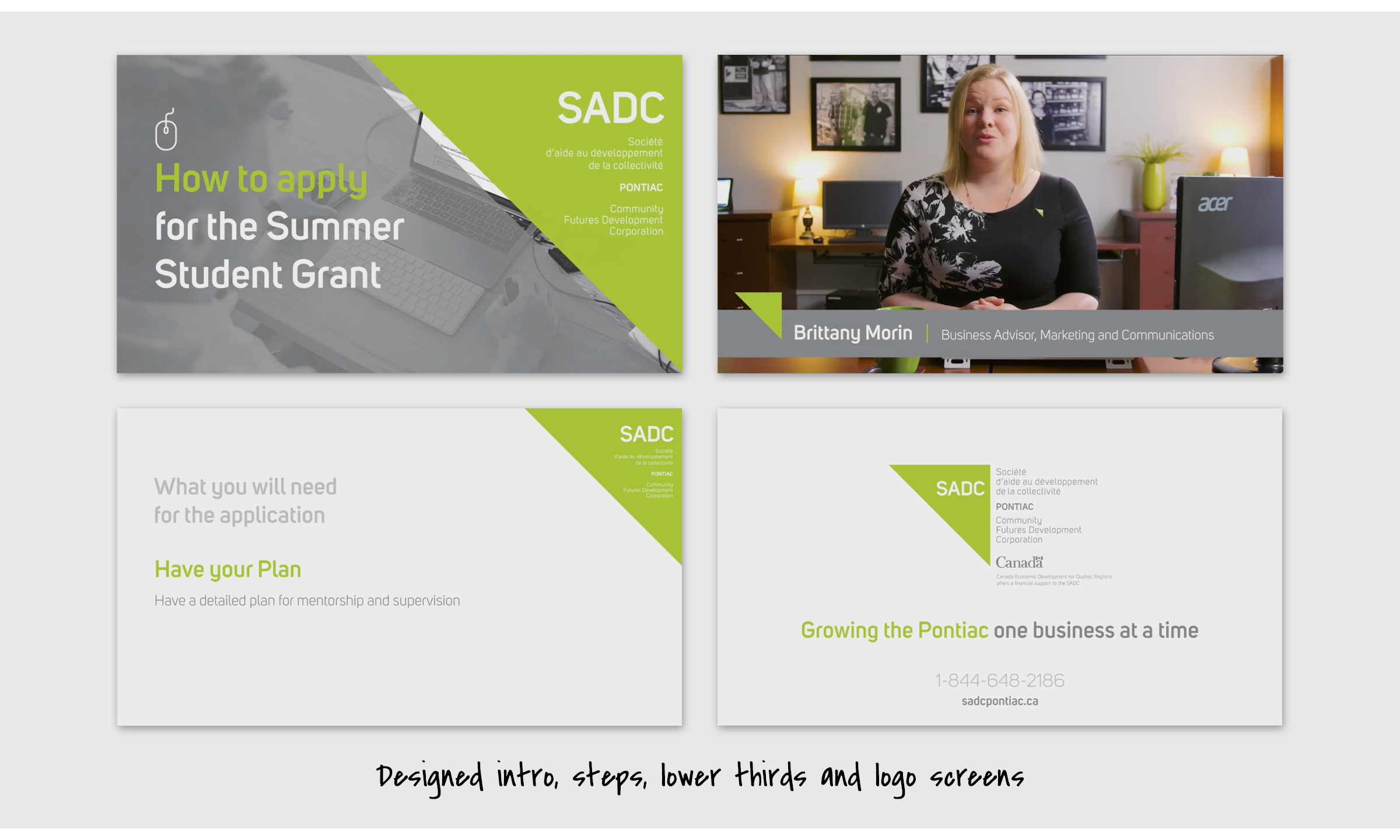 The SADC Pontiac needed How-To Videos to help clients learn about their programs. I created the graphics and animations for the videos produced by FIVE2NINE.